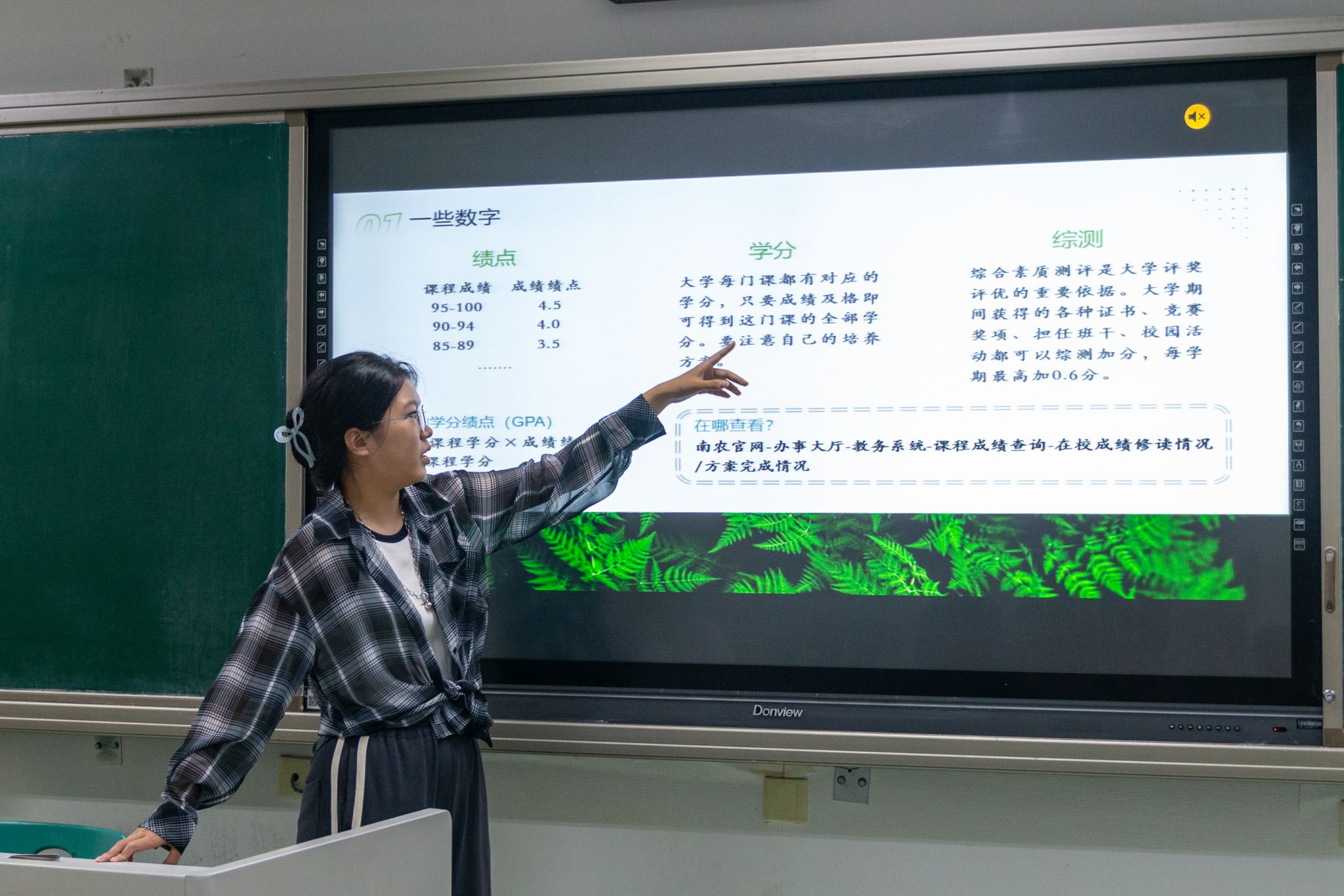 在升学指导方面,罗仁杰、陈可馨、周沁霏、赵静雅分享了保研政策、考研准备、出国留学以及海外交流项目的经验,为新生的学业规划提供了有益参考。与此同时,许可、董彦滨、陈静萱、吴汶罡结合自身经历,传授了高效学习技巧、课程应对策略和时间管理方法,助力新生打牢学业基础。除此之外,王静如、李秉璋、毕肇轩介绍了南京的文化特色与生活攻略,并分享了校园生活实用小贴士,让新生更快适应学习与生活。最后,冯俣顺、沈一坤、申强、许腾月带来社团与学生会的相关介绍,鼓励大家在学业之余积极参与活动,拓展兴趣、锻炼能力。