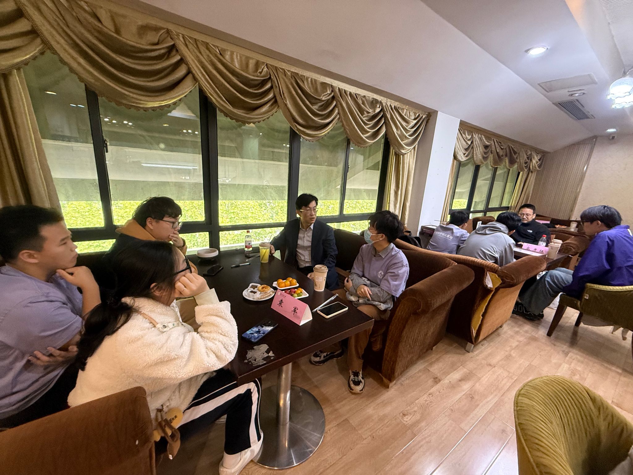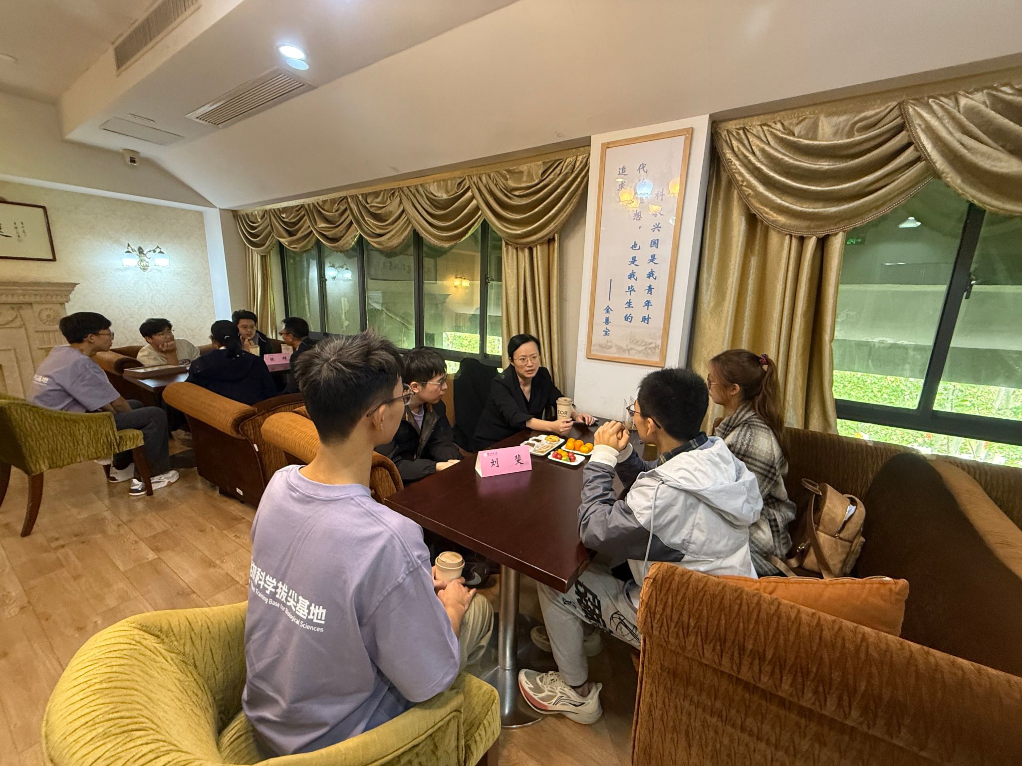 随后,与会师生移步图书馆1902共享空间展开自由交流。同学们就科研方向、课程选择及未来规划与特聘导师们深入探讨,特聘导师们耐心解答、悉心指导,现场氛围轻松融洽。